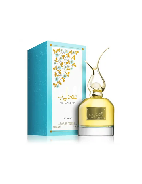 Andaleeb Asdaaf es un tributo a la autenticidad y riqueza de la cultura perfumista árabe. Cada frasco de esta fragancia es una obra maestra que captura la esencia de la elegancia y la majestuosidad, reflejando el legado del Medio Oriente en cada rocío.