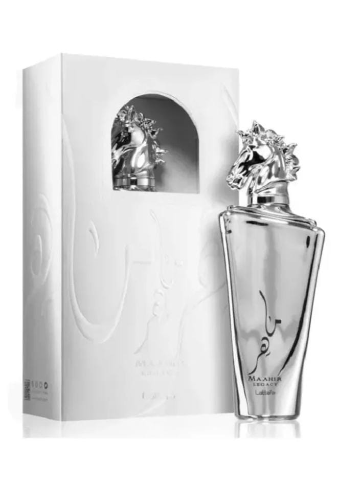 Maahir Legacy de Lattafa Perfumes es una fragancia de la familia olfativa para Hombres. Las Notas de Salida son lima (limón verde), menta, toronja (pomelo), lavanda y piña; las Notas de Corazón son baya de enebro, romero, pimienta negra, geranio y Incienso; las Notas de Fondo son ambroxan, musgo de roble, vetiver, cachemira y haba tonka