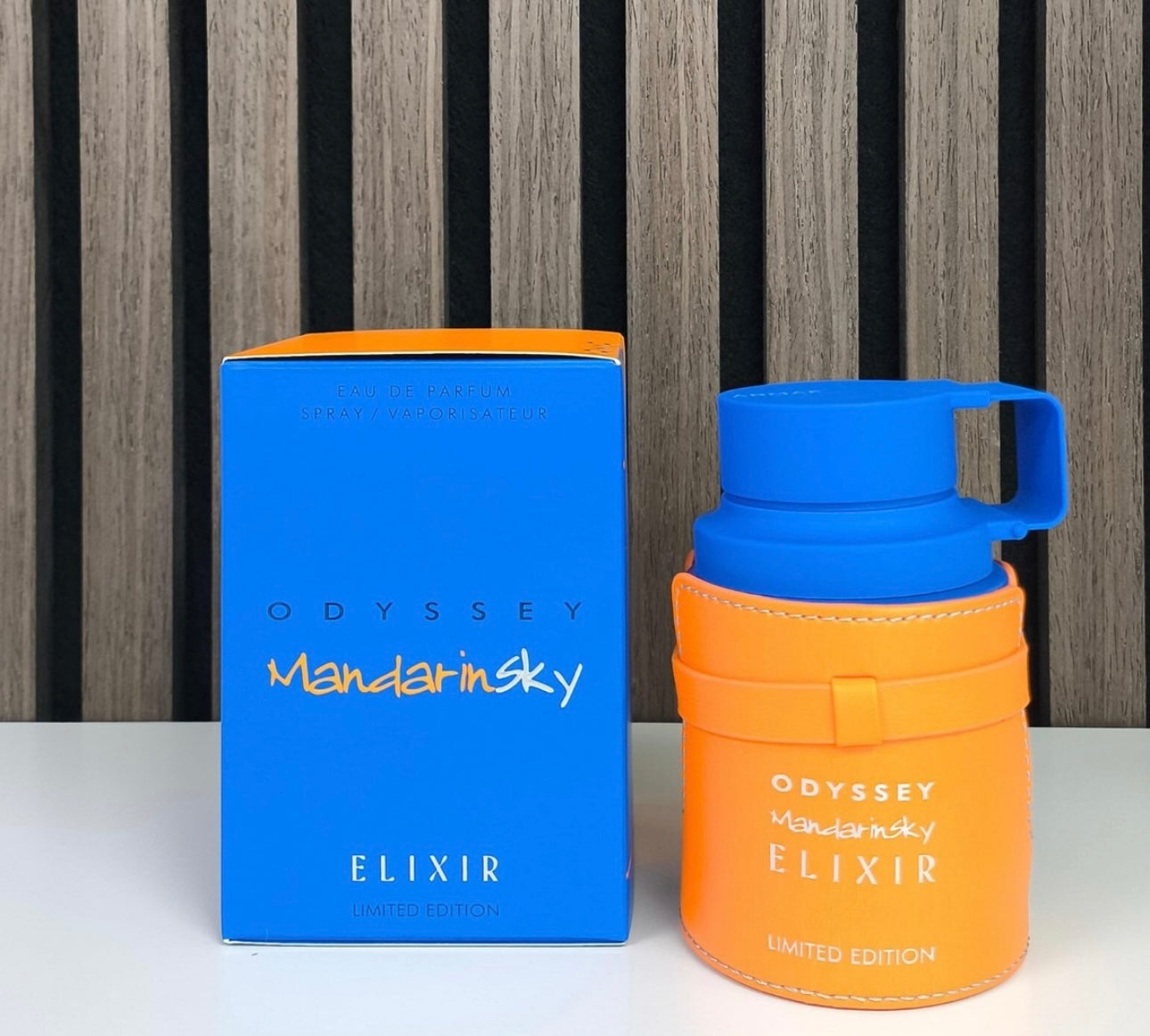 La nota de salida de Mandarin Sky Elixir de Armaf está compuesta por mandarina, naranja, azafrán y salvia. Estas notas crean una apertura cítrica, fresca y especiada. La mandarina y la naranja aportan un toque vibrante y dulce, mientras que el azafrán añade un matiz especiado y ligeramente amargo, y la salvia aporta un matiz herbáceo