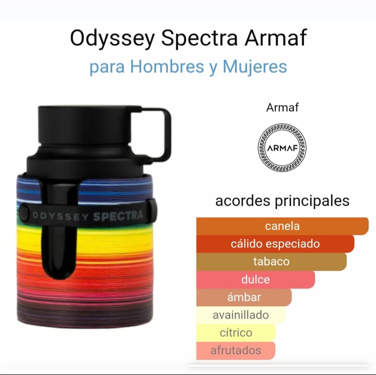 💖 Odyssey Spectra es una fragancia única y envolvente, lanzada en 2024, que combina la calidez especiada con una riqueza oriental. Esta fragancia unisex es ideal para quienes buscan una esencia sofisticada y audaz, perfecta para destacar en cualquier ocasión.