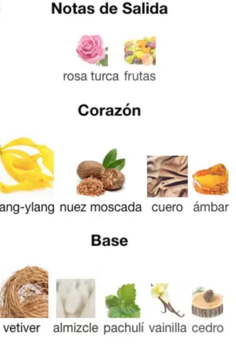 Esta cautivadora y seductora composición combina notas frescas y cálidas para crear una experiencia olfativa única y exclusiva.